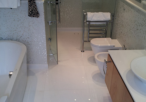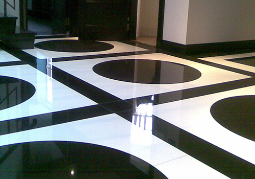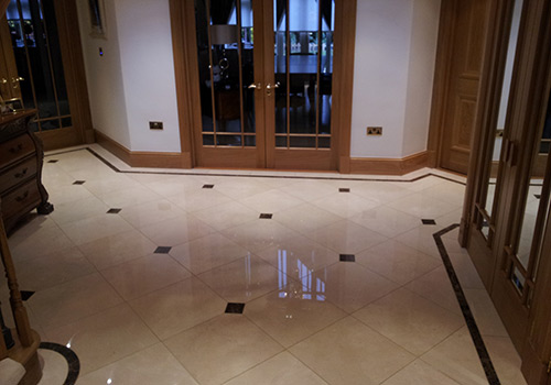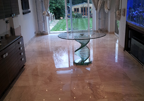 Natural stone is polished by means of crystallisation, it is a method that bonds the surface molecules together to achieve a high gloss shine. Some natural stones develop traffic wear over time which needs to be re-polished to help with longevity. To enable natural stone to keep its gloss, periodic polishing maintenance programmes can be implemented.