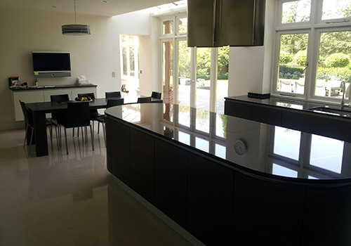 Granite kitchen work surfaces, although very durable do suffer from water damage and staining. To enable your work tops to stay at their best condition, chemical sealing should be applied to prevent this. Our process enables us to produce a surface that does not require specialist products on daily basis to produce a clean finish.